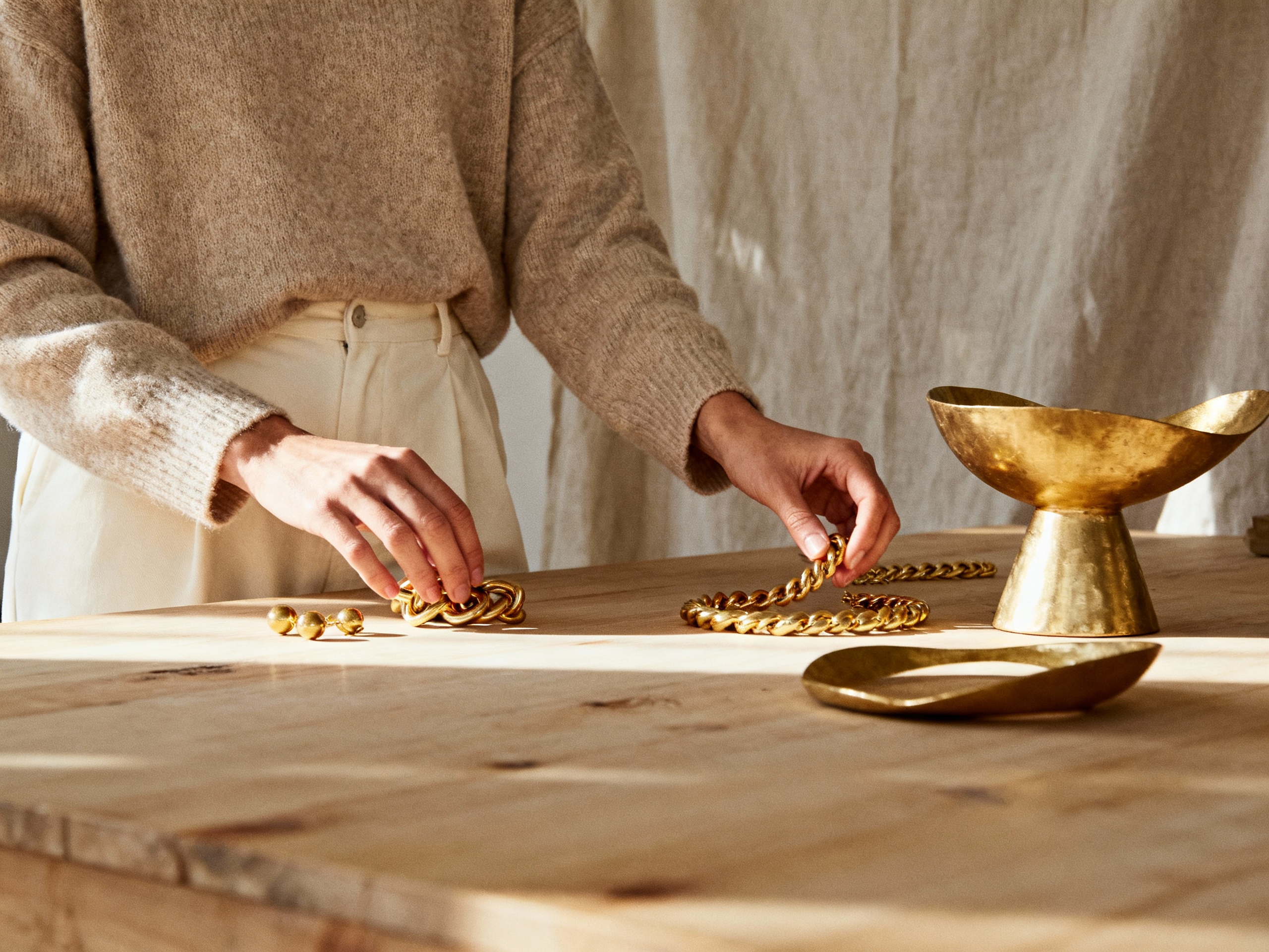 Como posso criar um ambiente neutro com toques de dourado sem sobrecarregar a decoração?